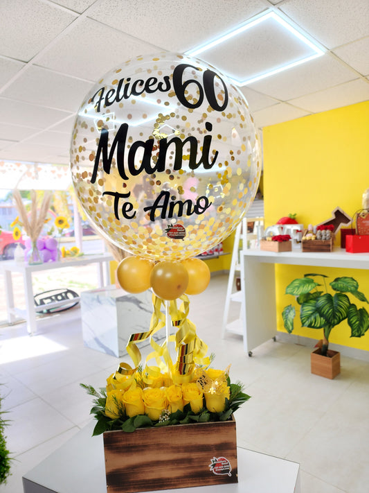 Combo 9 Wood Rose & Globo Personalizado